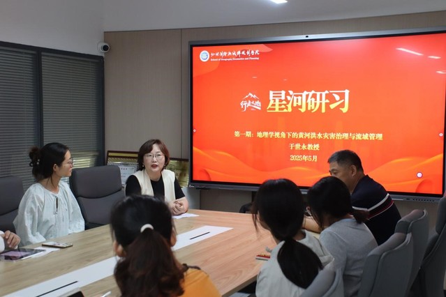 于世永教授主要从事第四纪环境演变、环境与社会考古、理论与定量古气候、地球动力学与海面变化、陆地生态系统碳循环研究,他从地理学思维出发,系统分析与讲述了空间性、整体性、动态性、辩证性和层次性等五大特性,紧密结合黄河洪水治理相关研究强调了地理学研究的方法与过程,将理论落实到实际应用。接着,于教授从沉积物特征和相关历史故事的角度来系统分析了各时期黄河洪水的影响及时间变化差异,发人深省。最后,于教授带领同学们从地理学的视角下分析黄河洪水灾害问题,引用了有关黄河洪水形成的理论并进行了分析,从自身研究基础出发分析其合理性,并上升到各历史时期黄河防洪治理,指出只有在中国共产党的领导下、采取合理的工程措施方可以解决黄河洪水泛滥的惨痛情况。
