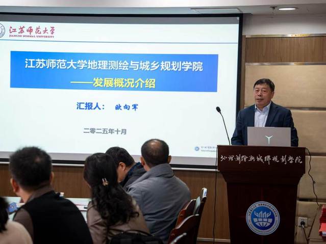 2025年10月26日下午,江苏师范大学地理测绘与城乡规划学院在泉山校区静远楼1306会议室召开学科专业建设暨“十五五”规划发展研讨会。学院院长欧向军主持会议,特邀校友专家与学院教师代表参会。