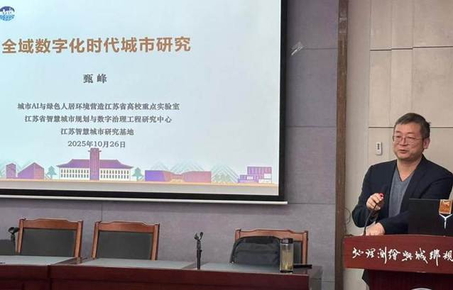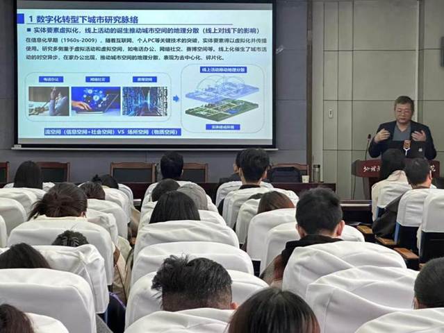 2025年10月26日上午,南京大学甄峰教授在静远楼1307报告厅为地测学院地理学硕士作了题为《全域数字化时代的城市研究》的学术讲座。此次讲座由地测学院院长欧向军教授主持,相关专业师生听取了本次讲座。