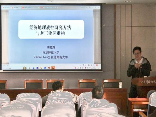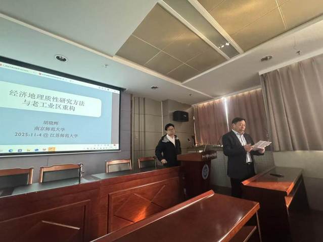 2025年11月4日下午3:00,南京师范大学胡晓辉教授应邀在静远楼1307作题为《经济地理定性研究与老工业重构研究实践》的学术报告。报告由地测学院院长欧向军主持,我院相关专业师生听取了此次报告。