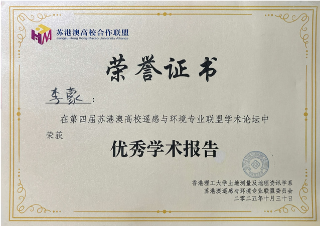 此次参会和获奖不仅体现了我院师生在遥感与环境领域的专业水平,也是学院持续推动高质量人才培养与科学研究的成果体现,对进一步深化我院与苏港澳地区高校的科研合作与学术交流具有积极推动作用。