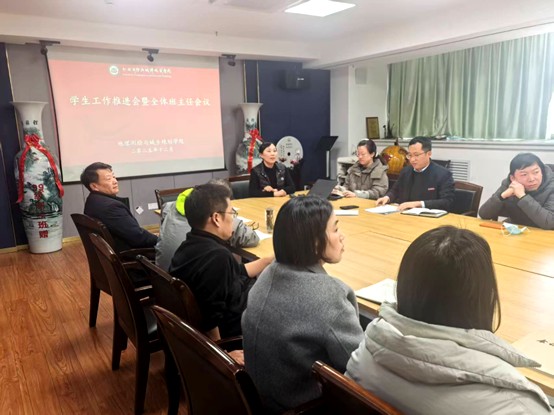 为进一步加强学生教育管理服务工作,切实保障学生安全与成长成才,12月30日上午,地理测绘与城乡规划学院召开学生工作推进会议暨全体班主任会议,围绕考风考纪、寒假安全教育、学生动态管理、资助帮扶及心理健康教育等重点工作进行指导。学院党委书记耿艳、副书记赵玉璋、全体辅导员及班主任参会,会议由赵玉璋副书记主持。