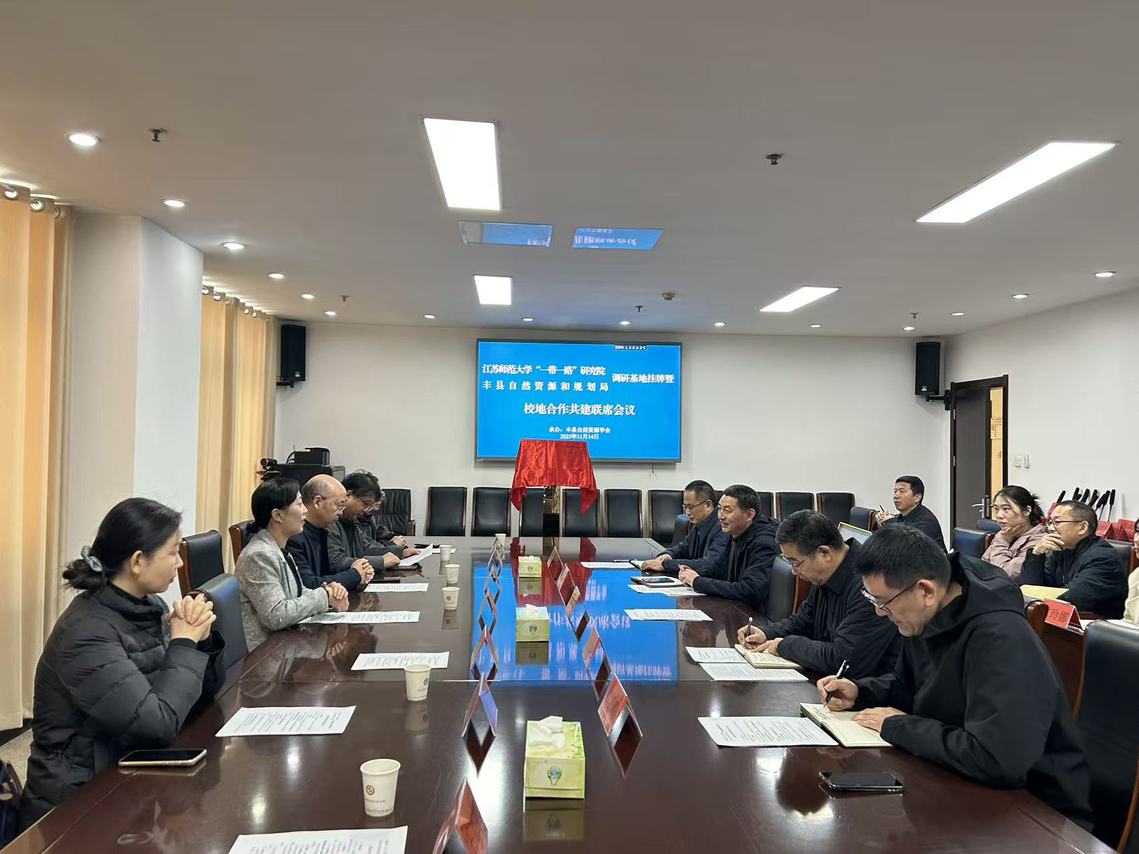 2025年11月14日上午,江苏师范大学“一带一路”研究院调研基地与政策观测点挂牌仪式在丰县自然资源和规划局成功举行。江苏师范大学“一带一路”研究院执行副院长耿艳与丰县自然资源和规划局党组成员、副局长刘吉亮共同为基地揭牌,双方代表共同见证。