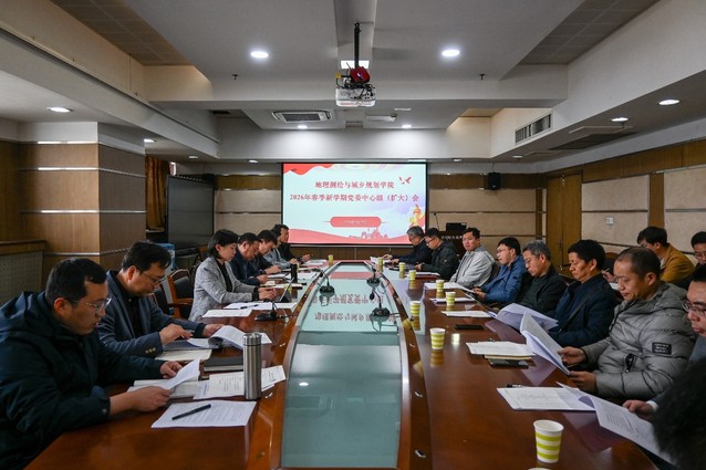 3月25日下午,地测学院2026年春季新学期党委中心组(扩大)学习会在静远楼1306会议室召开,学院领导班子、党委委员、学科带头人、导师组组长、系主任、教工党支部书记参加会议,党委书记耿艳主持会议。
